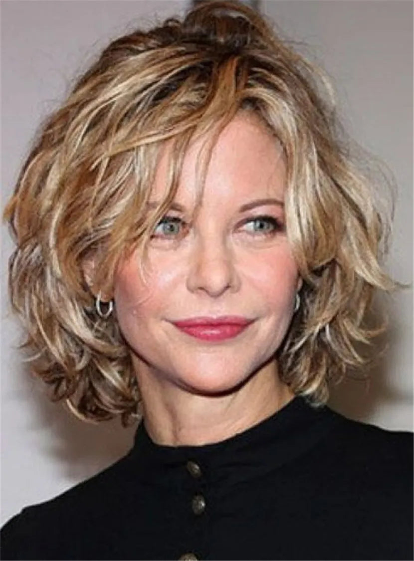 Deluxe Mixed Color Layered Celebrity Deeply Wavy Lace Front Wig Synthetic Hair 12 Inches