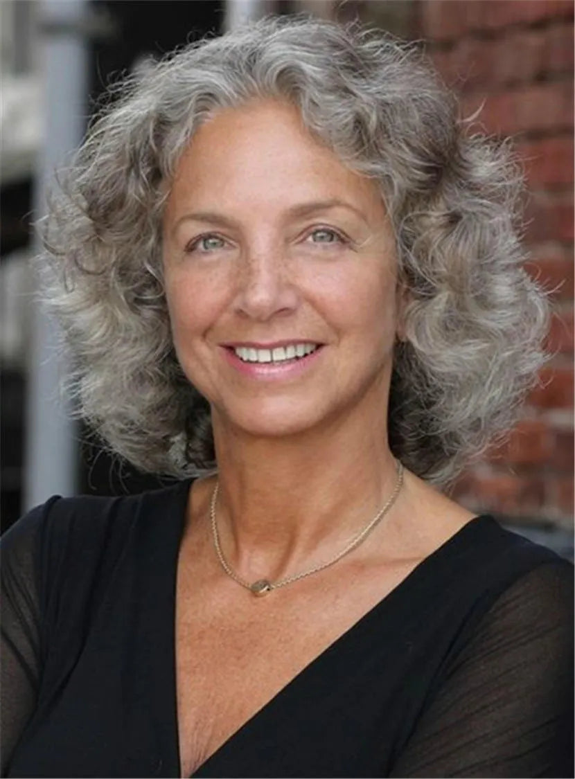 Medium Salt And Pepper Hair Curly Human Hair Lace Front Women Wigs for Older Women