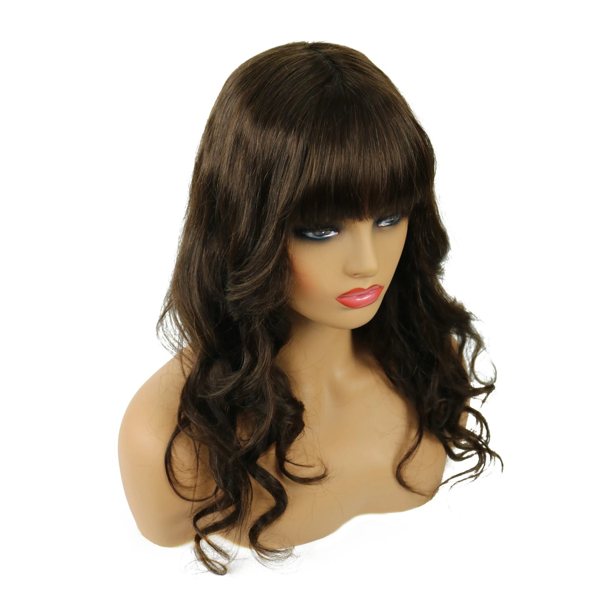 Natural Wave Capless Wig With Full Bangs 18 Inches 100% Human Hair Wig