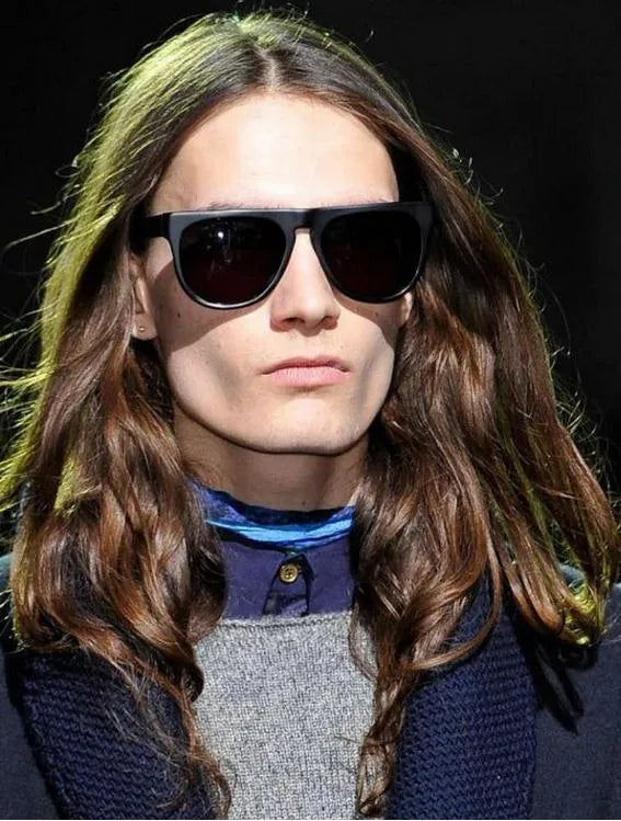 New Arrival Unisex Mens Hairstyle Long Loose Wavy Lace Wig 100% Human Hair 14 Inches