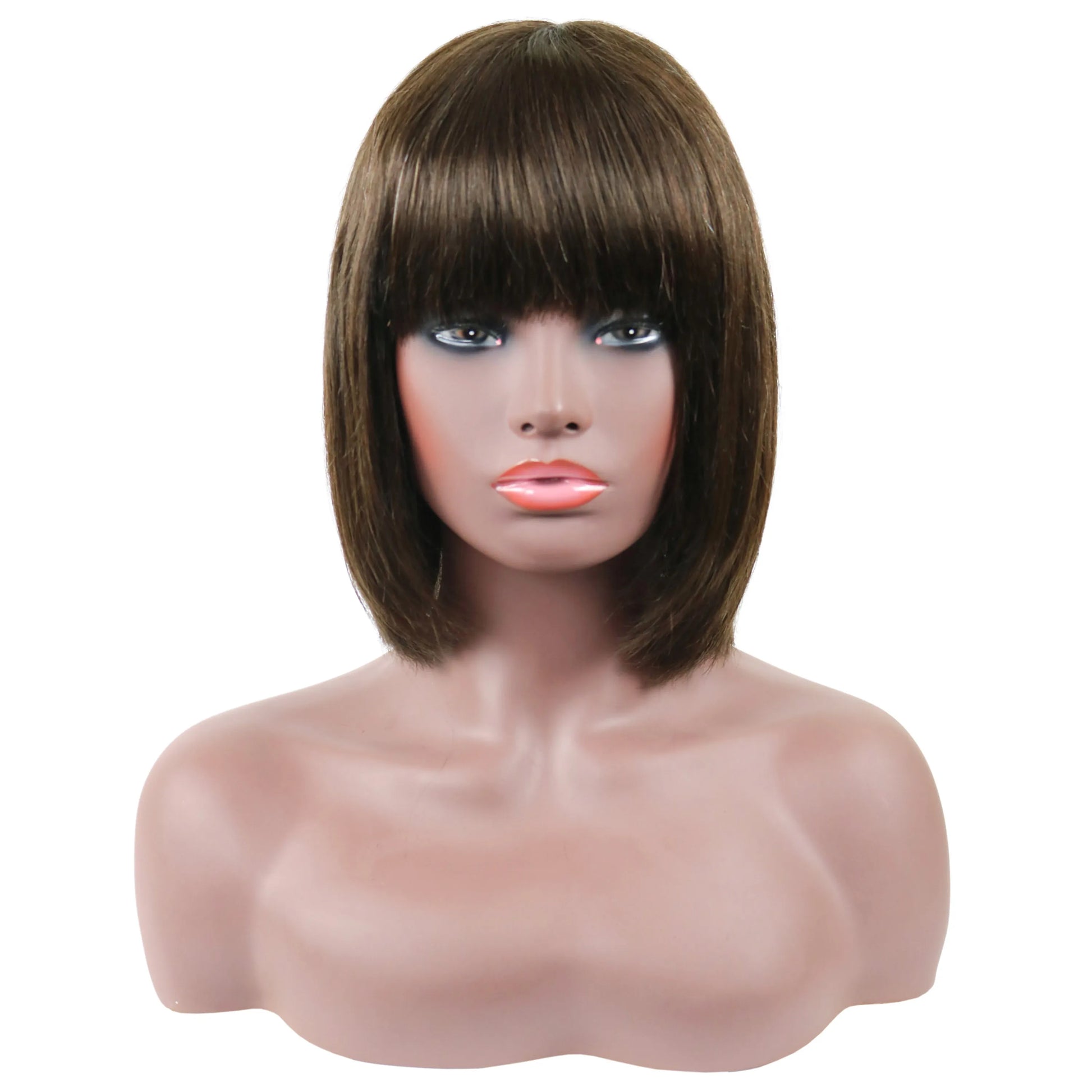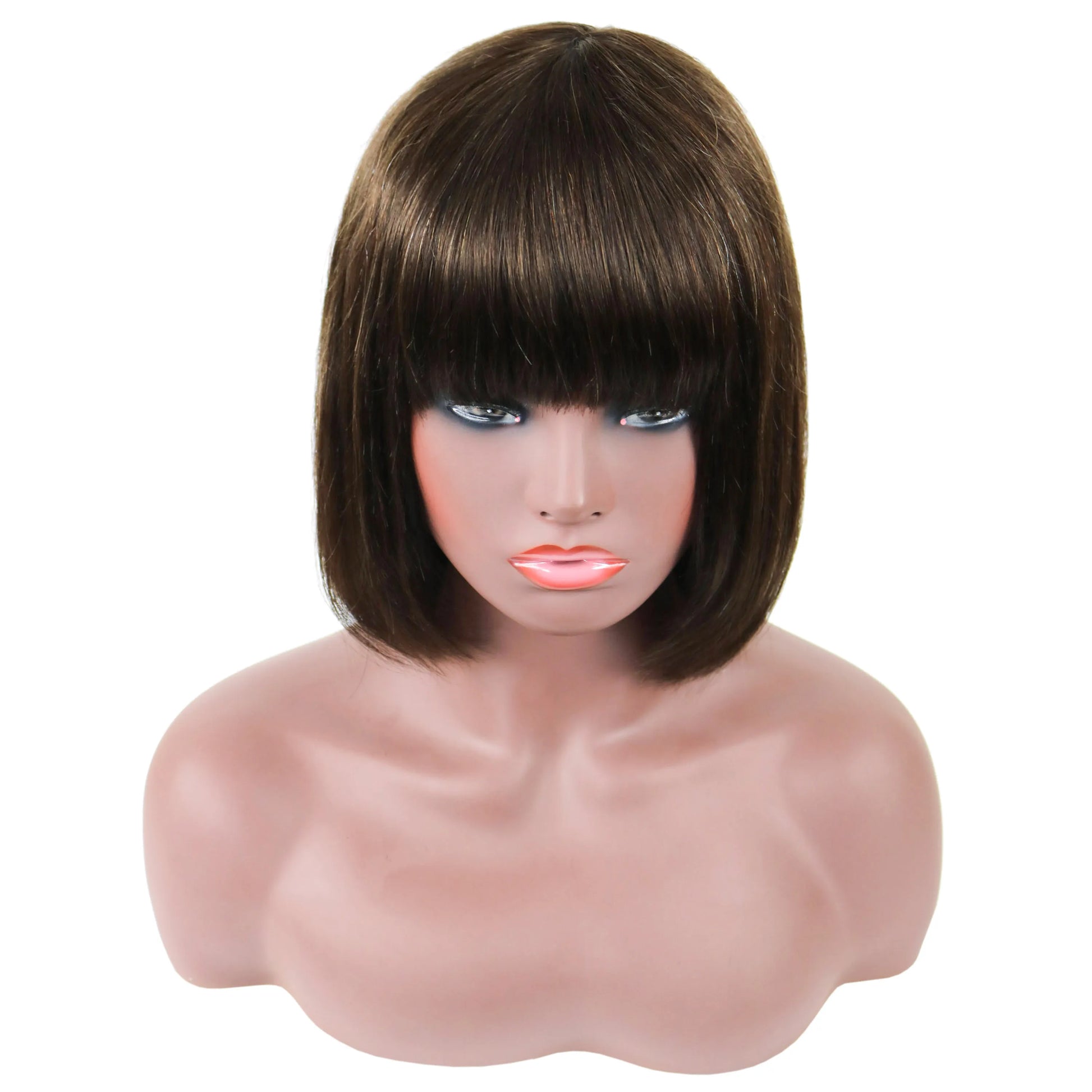 Short Straight Bob Wig 100% Human Hair With Full Bangs 10 Inches